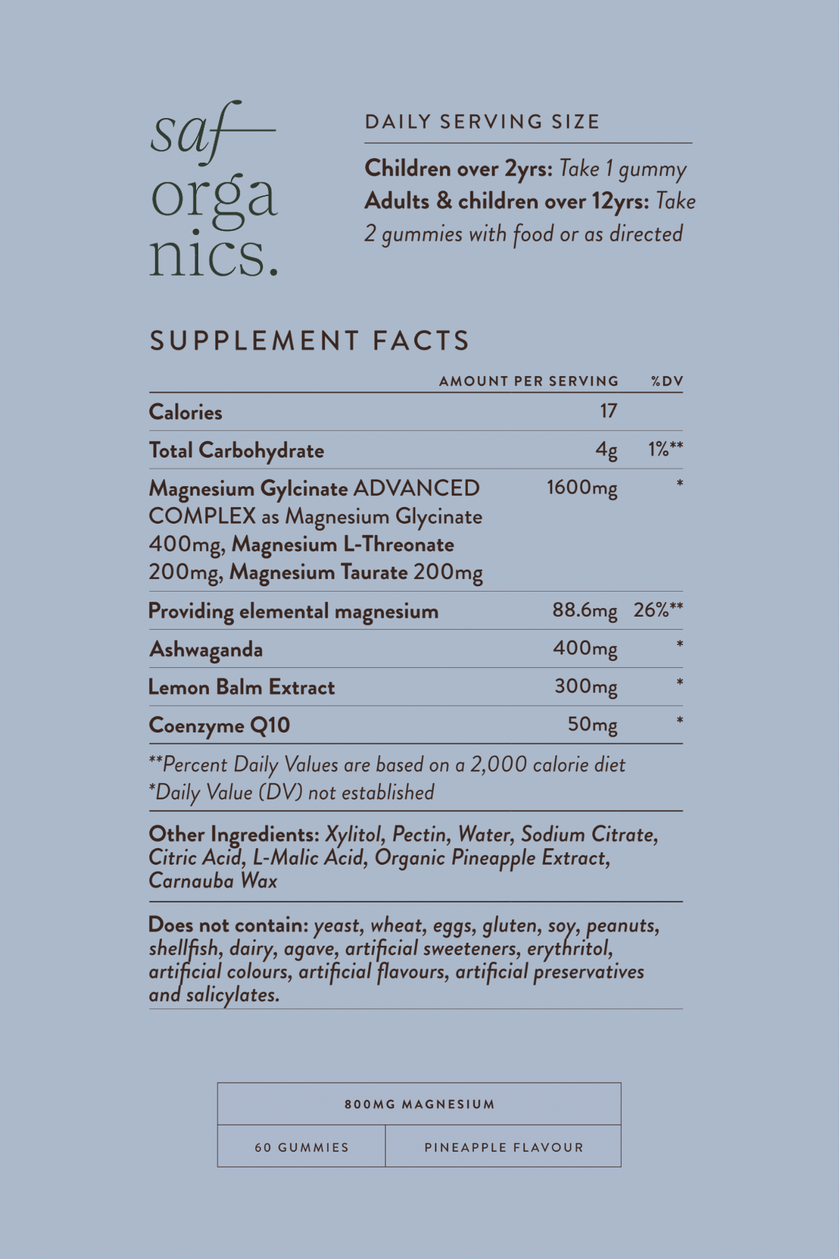 800mg Magnesium, 60 Gummies, Pineapple Flavour.