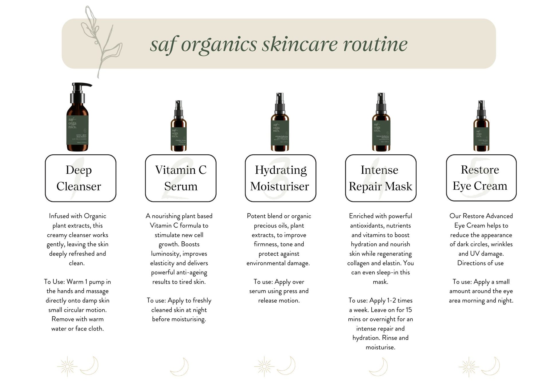 Saf Skincare's Extreme Hydrating Moisturiser has been formulated using all the rich organic ingredients to leave your skin feeling instantly hydrated and protects dry sensitive skin. We have a Potent blend of organic precious oils, plant extracts, to improve firmness, tone and protect against environmental damage caused by Australian weather.